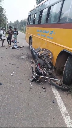 ಬೈಕ್ಗೆ ಶಾಲಾ ಬಸ್ ಡಿಕ್ಕಿ: ಸವಾರ ಸ್ಥಳದಲ್ಲೇ ಸಾವು; ಮತ್ತೊಬ್ಬ ಗಂಭೀರ