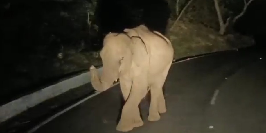 ದಿಂಬಂ ಘಾಟ್ನಲ್ಲಿ ಆಹಾರ ಹುಡುಕಿದ ಕಾಡಾನೆ