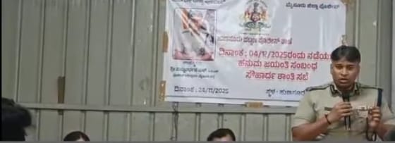 ಹುಣಸೂರು: ಡಿಸೆಂಬರ್ 4ರಂದು ನಡೆಯಲಿರುವ ಹನುಮ ಜಯಂತಿ ಮೆರವಣಿಗೆಯನ್ನು ಸೌಹಾರ್ದಯುತವಾಗಿ, ಶಾಂತಿಯುತವಾಗಿ ಆಚರಿಸಲು ಎಲ್ಲ ವರ್ಗದ ನಾಗರಿಕರು ಸಹಕರಿಸಬೇಕೆಂದು ಜಿಲ್ಲಾ ಪೊಲೀಸ್ ವರಿಷ್ಠಾಧಿಕಾರಿ ವಿಷ್ಟುವರ್ದನ್ ಮನವಿ ಮಾಡಿದರು. ನಗರ ಠಾಣೆಯಲ್ಲಿ ಸೋಮವಾರ ಆಯೋಜಿಸಿದ ಶಾಂತಿ ಸಭೆಯಲ್ಲಿ ಮಾತನಾಡಿದ ಅವರು, ಹುಣಸೂರು ಸದಾ ಶಾಂತಿಪ್ರಿಯರ ಊರಾಗಿ ಹೆಸರುವಾಸಿಯಾಗಿದೆ ಎಂದು ಹೇಳಿದರು. ಕಾನೂನು ಸುವ್ಯವಸ್ಥೆ ಕಾಪಾಡುವ ನಿಟ್ಟಿನಲ್ಲಿ ಸರ್ಕಾರ ಹೊರಡಿಸಿರುವ ಮಾರ್ಗಸೂಚಿಗಳನ್ನು ಕಟ್ಟುನಿಟ್ಟಾಗಿ ಪಾಲಿಸಬೇಕು ಎಂದು ಸೂಚಿಸಿದರು.